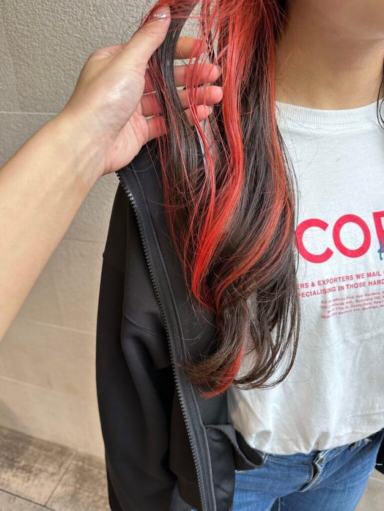 鮮やかな赤のオーダーだったので、黒髪よりブラウンに似合う少し柔らかい鮮やかな赤に◎