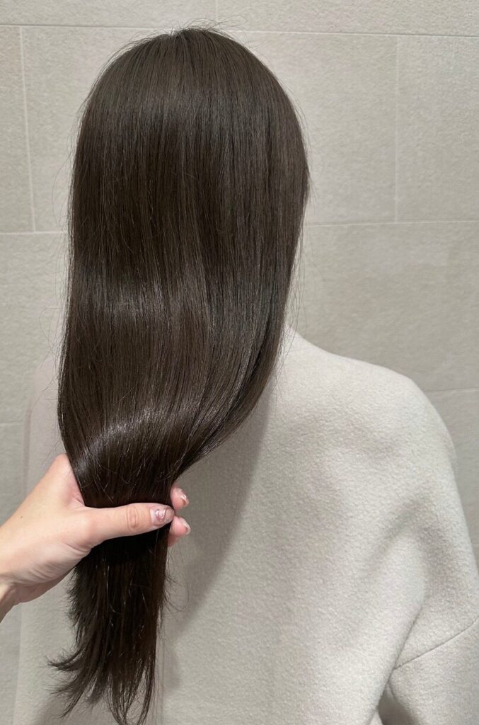 1回目のカラーで明るいベースを作り、2回目のカラーで赤みを抑えながらグレージュに♪