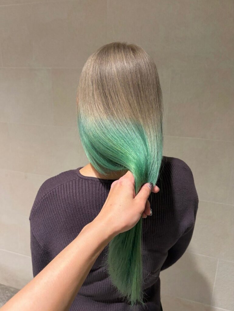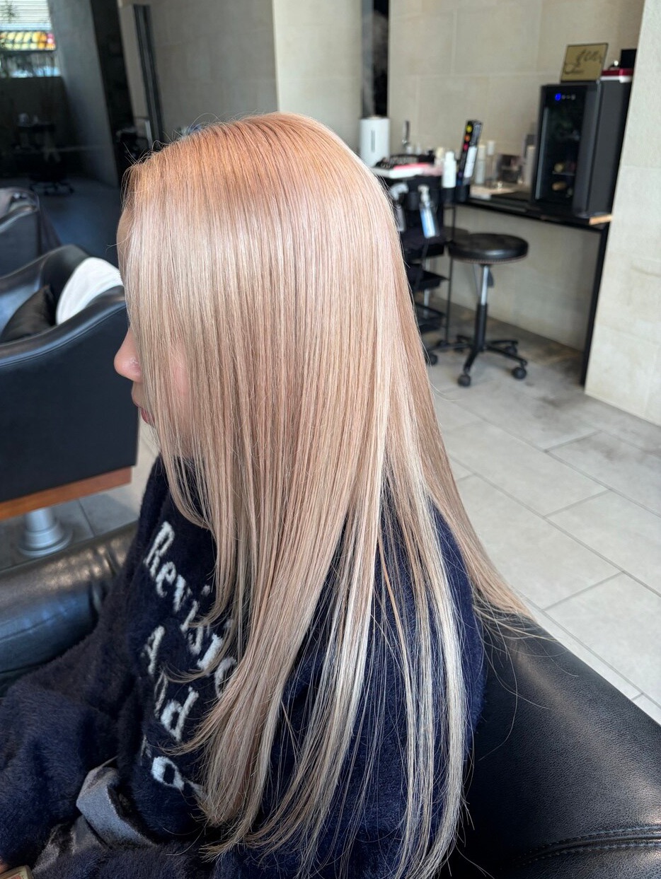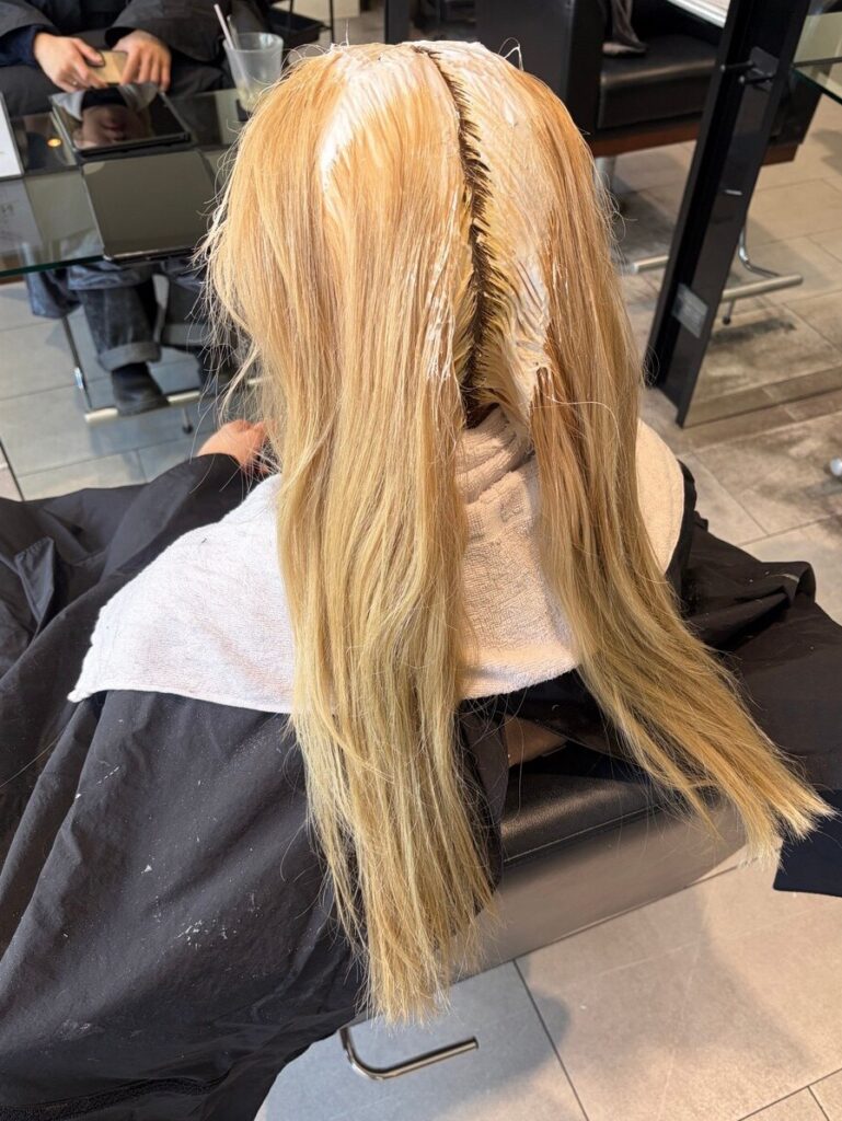 毛先に残っていたカラーの履歴を無理にブリーチで削らず薬剤コントロールで補正◎