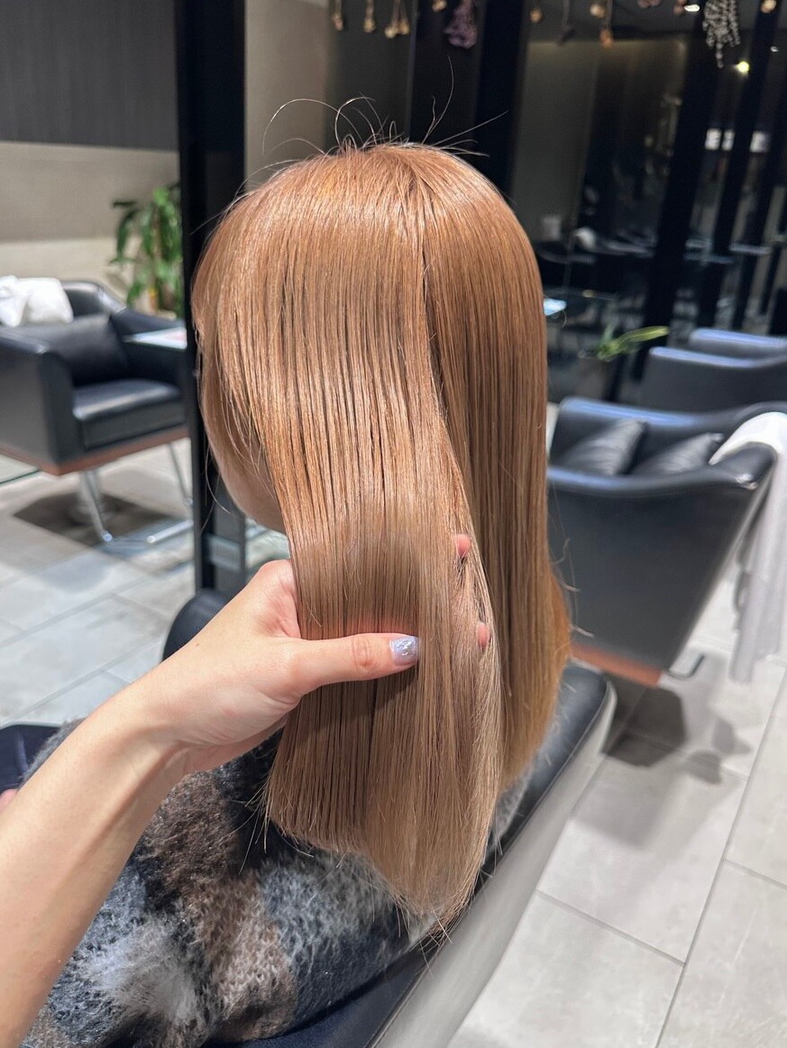 ブリーチでベースを明るくする事でカラーでは出せない透明感&柔らかい色に♪